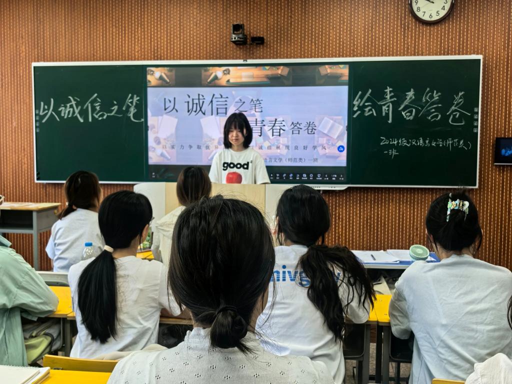 活动伊始,各团支部首先组织学习《pg游戏电子模拟器学生考试违规处理办法》等文件,结合考试作弊等真实案例解读违规后果,筑牢思想防线;随后通过讲述“曾子杀猪”“季布一诺千金”等传统诚信故事,汲取文化养分,强化诚信认同;最后号召同学们将诚信意识转化为行动,在考试中严守纪律、诚实应考。