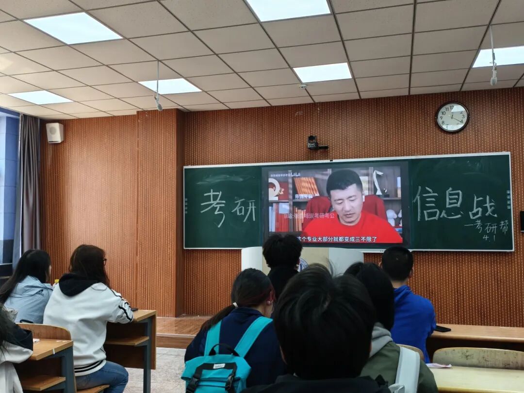 考研帮社团精心策划开展“考研信息战”主题活动。 活动中,同学们先集中观看视频,系统了解择校、备考、信息获取等核心内容并记录疑问,并结合自身考研经历分享心得、解答疑惑。未来,社团将持续探索更多交流形式,为考研学子提供更全面的服务支持。