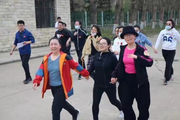 在教职工健步走比赛中,校党委副书记李淑慧、pg游戏官网党总支书记唐国忠、院长高岩与教师们一同参赛。在发令枪“砰”的一声响后,领导、教师们精神饱满,步伐矫健,享受着健步走带来的快乐。