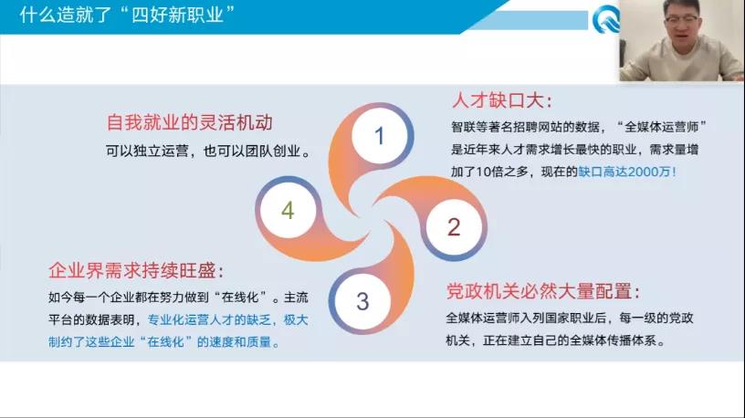 招聘会上,申伟为大家简单分析了公司的发展历程、经营业务等方面,让学生们对该公司有了基本的了解,并从直播行业关键词、新媒体运营信息调研等方面,对新媒体行业前景进行了深入分析。随后,申伟对本次招聘的岗位——新媒体运营师做重点介绍,让同学们对新媒体运营师的岗位职责、薪资待遇和就业方向等方面有了进一步了解。最后,申伟详细地讲解了公司的招聘流程,并送给同学们两句话一是“先就业再就业”,二是“尽早明确方向”。宣讲结束后,同学们积极提出自己存在的疑问,申伟对同学们的问题悉心解答。