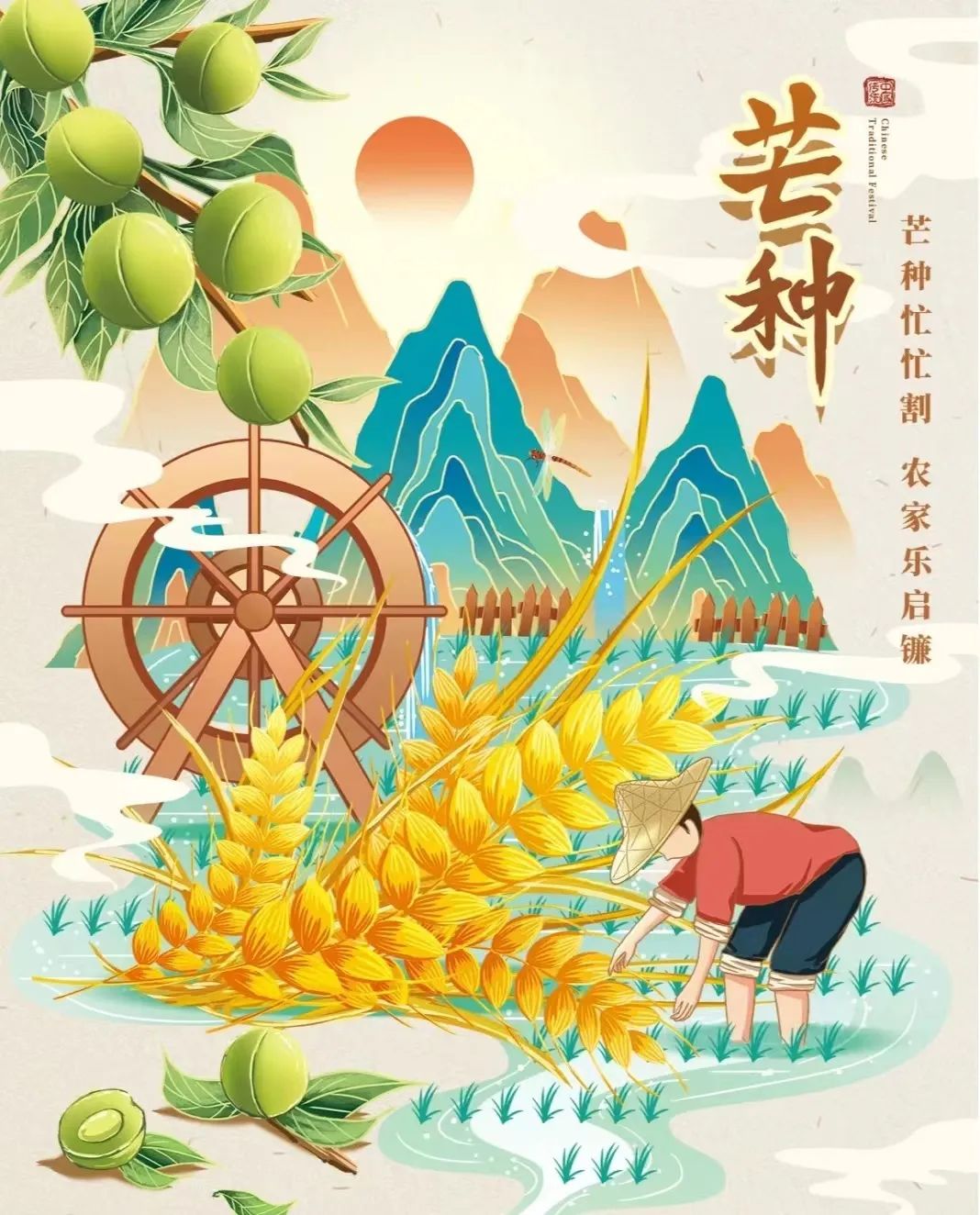 芒种节气简介仲夏农历五月,时节日渐炎热,雨水一落,人们就像置身在巨大的蒸笼里。此时若去到田野间,农人的汗水和雨水一样,“噼里啪啦”往下落。俗话说:“芒种芒种,有收有种。”这是一个既有收获又得播种的节气。