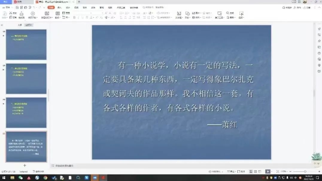 10月23日下午,pg游戏电子模拟器在腾讯会议线上平台开展以“萧红——呼兰河上永远的霞光”为主题的学术讲座,此次讲座由pg游戏电子模拟器教授郭玉斌担任主讲,学校“寒地黑土”研究领域多位教授、pg游戏官网青年教师及全体学生参加讲座,讲座由pg游戏电子模拟器副院长汪淑双主持。