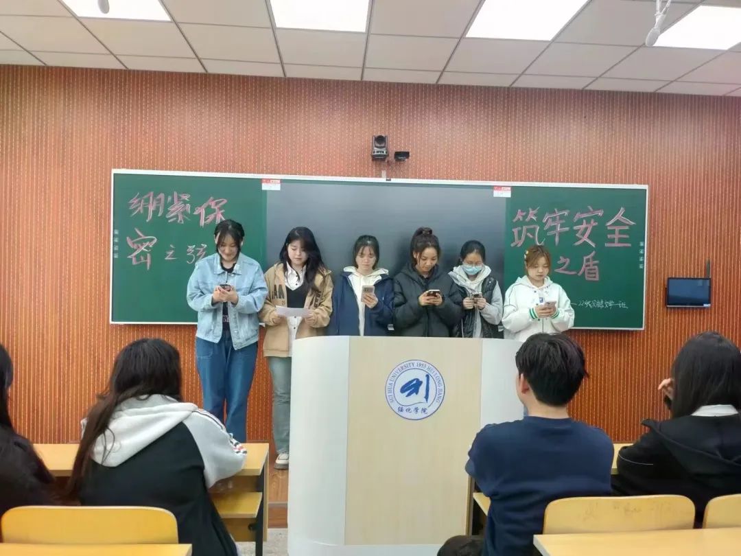 活动分为三个环节:首先,各团支部组织同学们观看《提高警惕、筑牢防线》《莫让微信成“危信”》等保密警示教育片,增强同学们做好新时代保密工作的责任感与使命感。随后,各团支部开展保密知识竞赛活动,通过问答、抢答等方式对同学们掌握的保密知识进行测试,提高同学们的安全保密意识。最后,组织大家在“黑龙江省干部教育网络学院”下载《保密法》解读专题课程,观看课程内容,进一步增强、提升同学们的保密意识和保密行为,自觉维护国家安全。